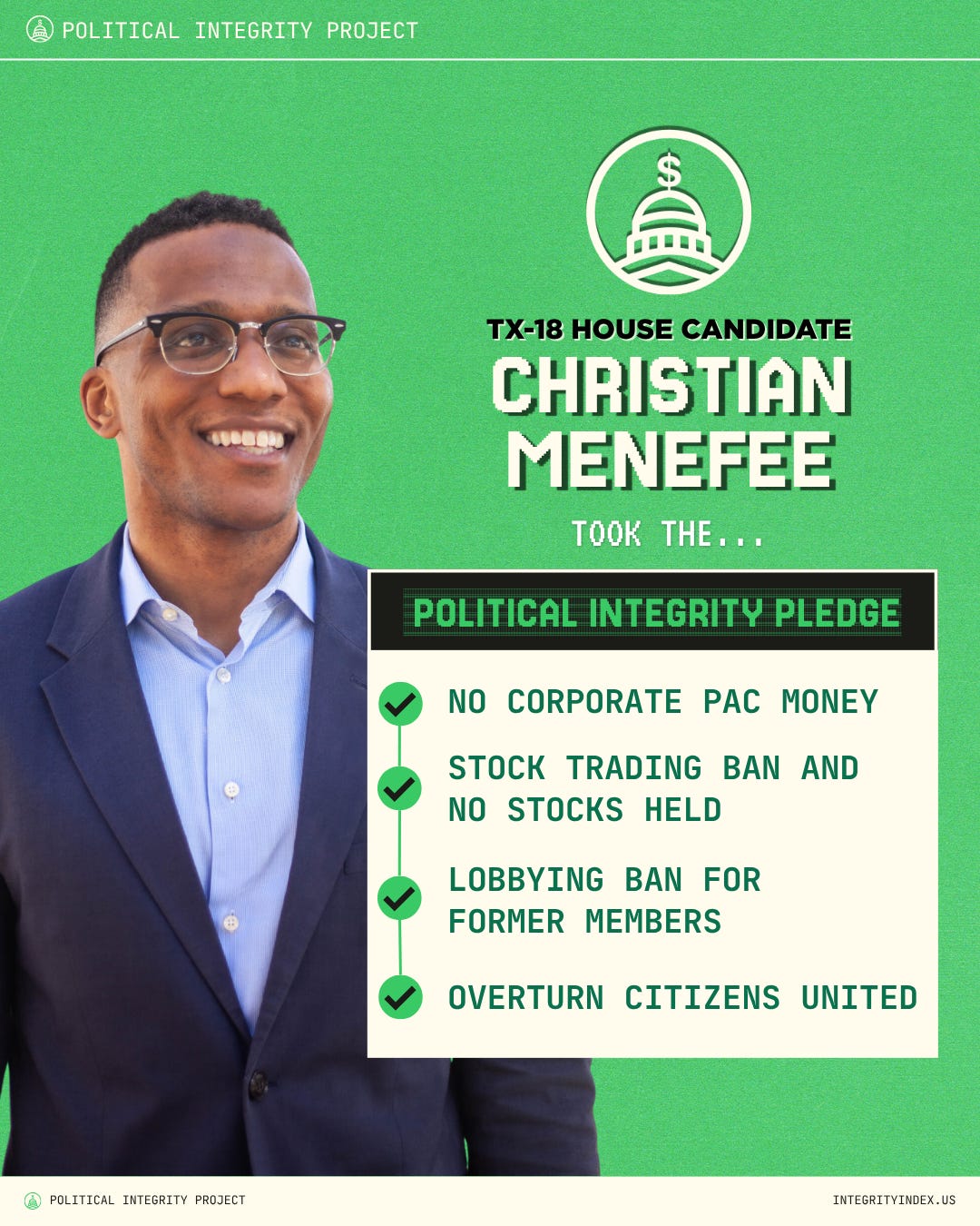Now-Rep. Christian Menefee is the first candidate to take the pledge, win, and follow through.